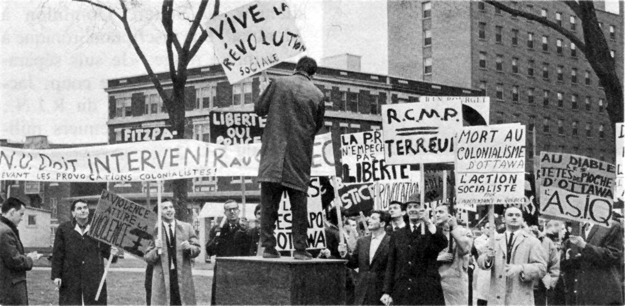 Francouzské komunity se postupně dovolávaly stále větších práv, což vyvrcholilo v 60. letech minulého století. V té době se projevila první silná vlna separatismu. Vzniklo několik teroristických hnutí, z nich nejznámější je asi FLQ (Front de Libération du Québec). Cílem těchto organizací bylo dosáhnout osamostatnění Québecu skrze násilnou trestnou činnost jakou byly cílené vraždy politiků, únosy, bombové útoky či sabotáže mostů.