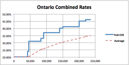 Kanadská daň z příjmu je narozdíl od české tzv. progresivní, to znamená, že čím větší máte příjem, tím máte větší průměrnou daň z příjmu. O marginálních daňových pásmech už jsme psali. K tomuto se také váže jeden takový mýtus a to sice, že se může stát, že když vám zvýší mzdu v práci, a dostanete se do vyššího marginálního pásma, můžete ve výsledku vlastně vydělávat méně. To však nikdy není pravda. Pamatujte, že v dalším marginálním pásmu se daní až ten další vydělaný dolar. To znamená, že tím nejvyšším procentem bude daněna jen ta část nad dolní hranicí nejvyššího marginálního pásma. Proto zvýšení hrubé mzdy vždy vede ke zvýšení čisté mzdy. (Pozor, můžete ale přijít o nějakou formu sociální podpory)